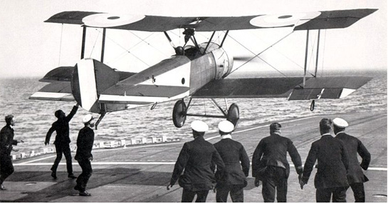 航空母艦在二戰(zhàn)中首度被廣泛的運(yùn)用。1940年,英國海軍的“光輝”號航空母艦出動(dòng)魚雷轟炸機(jī)編隊(duì)攻擊了塔蘭托港內(nèi)的意大利海軍并且擊沉一艘、擊傷三艘戰(zhàn)列艦。此舉使美國等海上強(qiáng)國意識到航母時(shí)代的來臨。