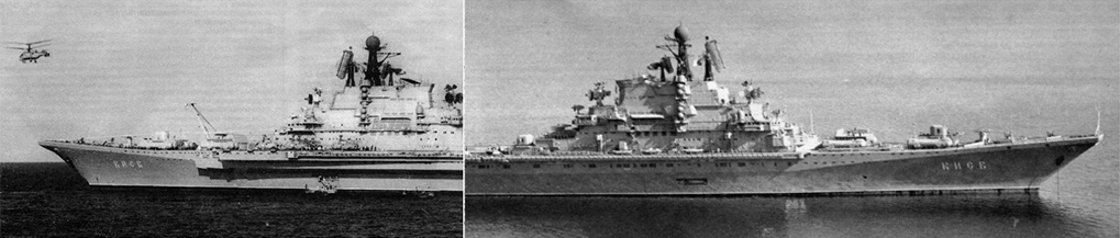 “頂帆”對空警戒雷達(dá)(“巴庫”號為“天空哨兵”相控陣對空警戒雷達(dá)),“頂 舵”對空/對海警戒雷達(dá),“陷口”制導(dǎo)雷達(dá)(用于SS-N-12),“雙頭燈”制導(dǎo) 雷達(dá)(用于SA-N-3),“氣槍群”制導(dǎo)雷達(dá)(用于SA-N-4),“梟聲”炮瞄雷達(dá) (用于76毫米火炮),“低音帳篷”炮瞄雷達(dá)(用于30毫米近防炮),“十字劍” 制導(dǎo)雷達(dá)(用于SA-N-9) ? 航速:32節(jié) ? 動(dòng)力:8臺(tái)鍋爐,4臺(tái)蒸汽機(jī),4軸,雙舵,200000馬力 ? 續(xù)航力:13500海里/18節(jié),4000海里/31節(jié) ? 航員:1500人(其中航空人員300名左右) |