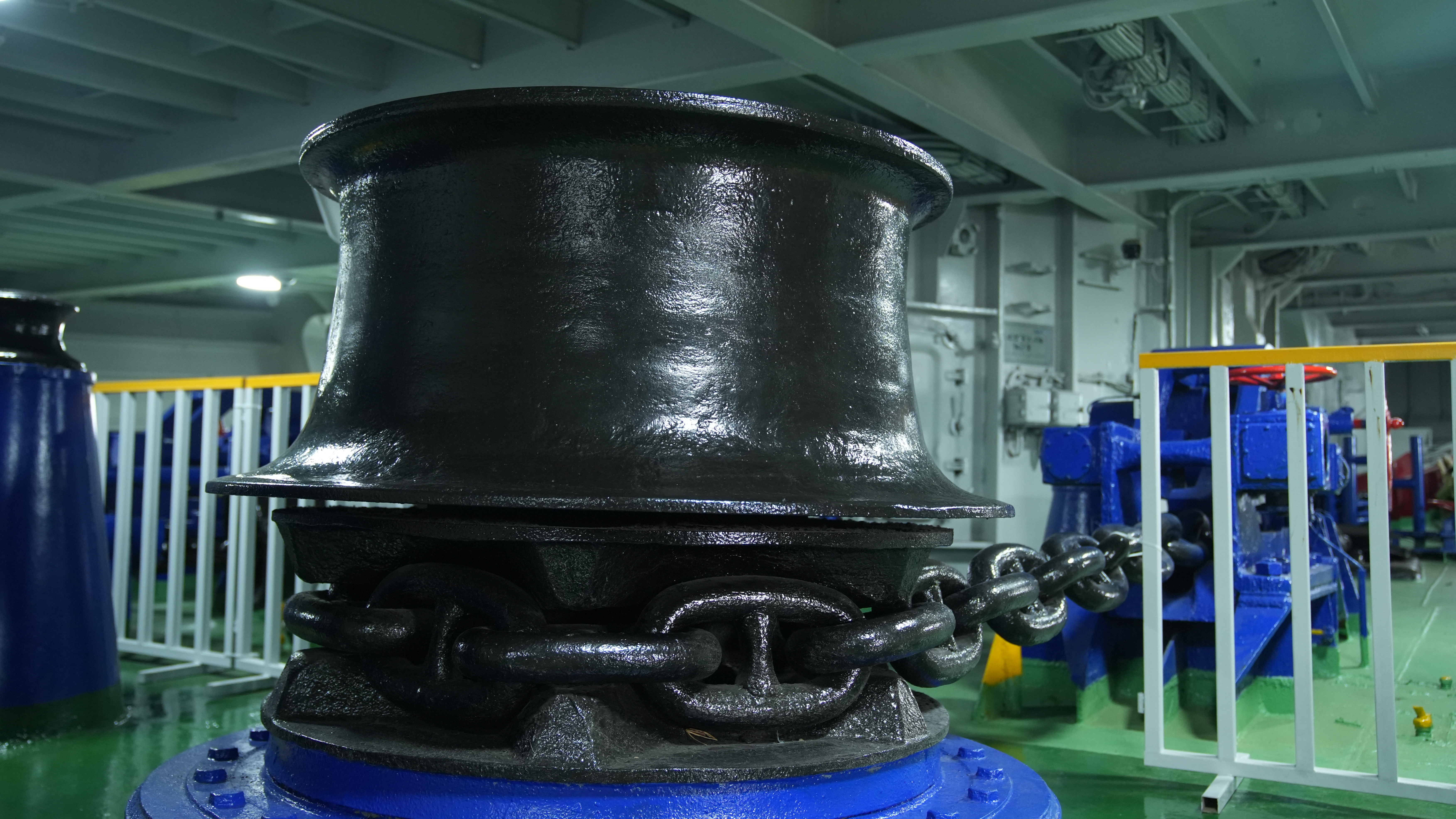 錨纜艙位于二甲艦艏,用于航母停靠、系纜和放錨等。艙內(nèi)還設(shè)有76 火炮彈藥庫、原艦印刷廠、傾斜水兵艙和火箭式深水炸彈彈藥庫等。